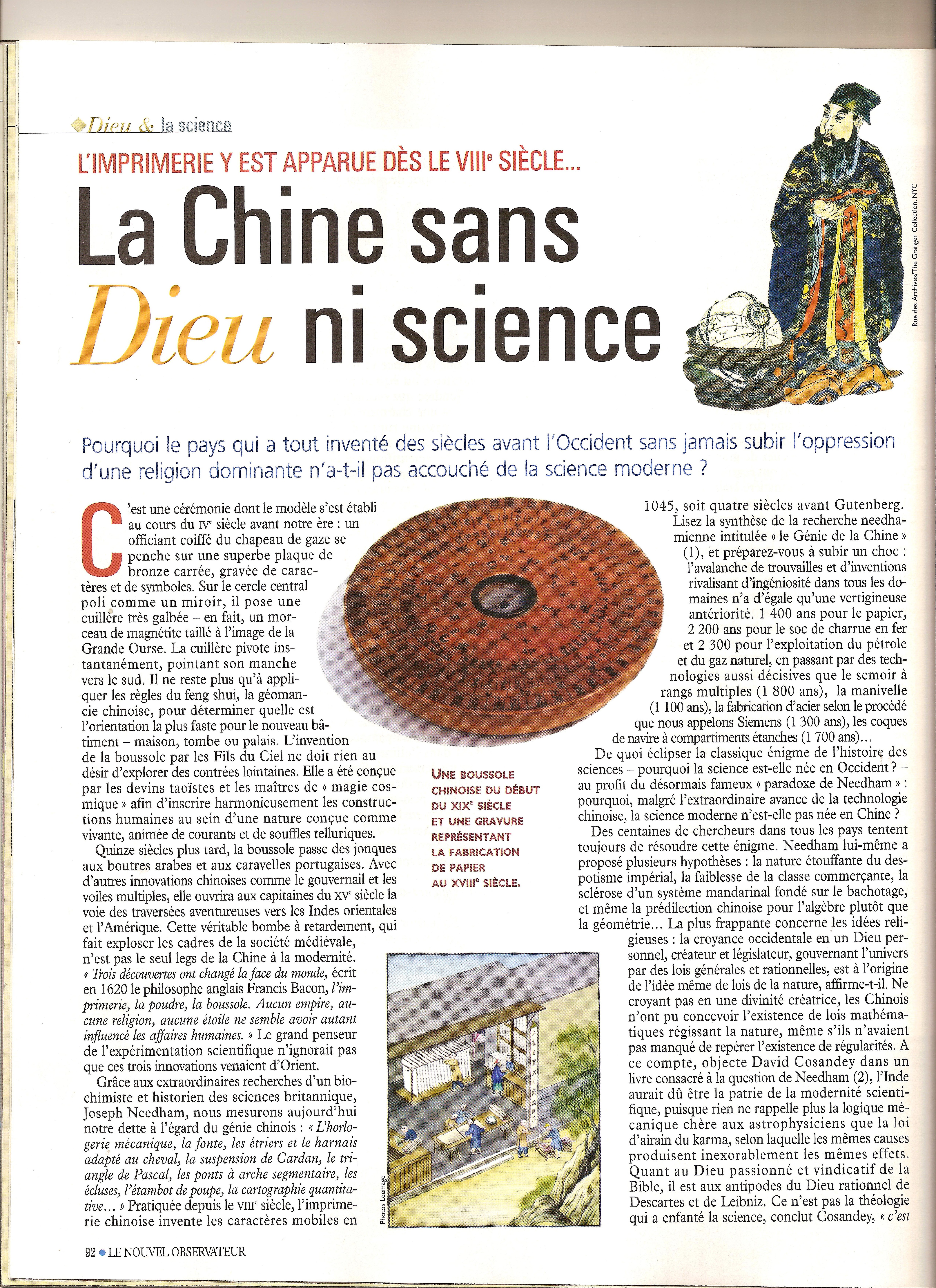 (Ursula Gauthier, "La Chine sans Dieu ni science", Le Nouvel Observateur, no2094-95, 23 déc. 2004, Article Chine. Article Islam. Couverture magazine. Copie de sûreté de la version internet: Le site Chine-Informations a également reproduit cet article. |