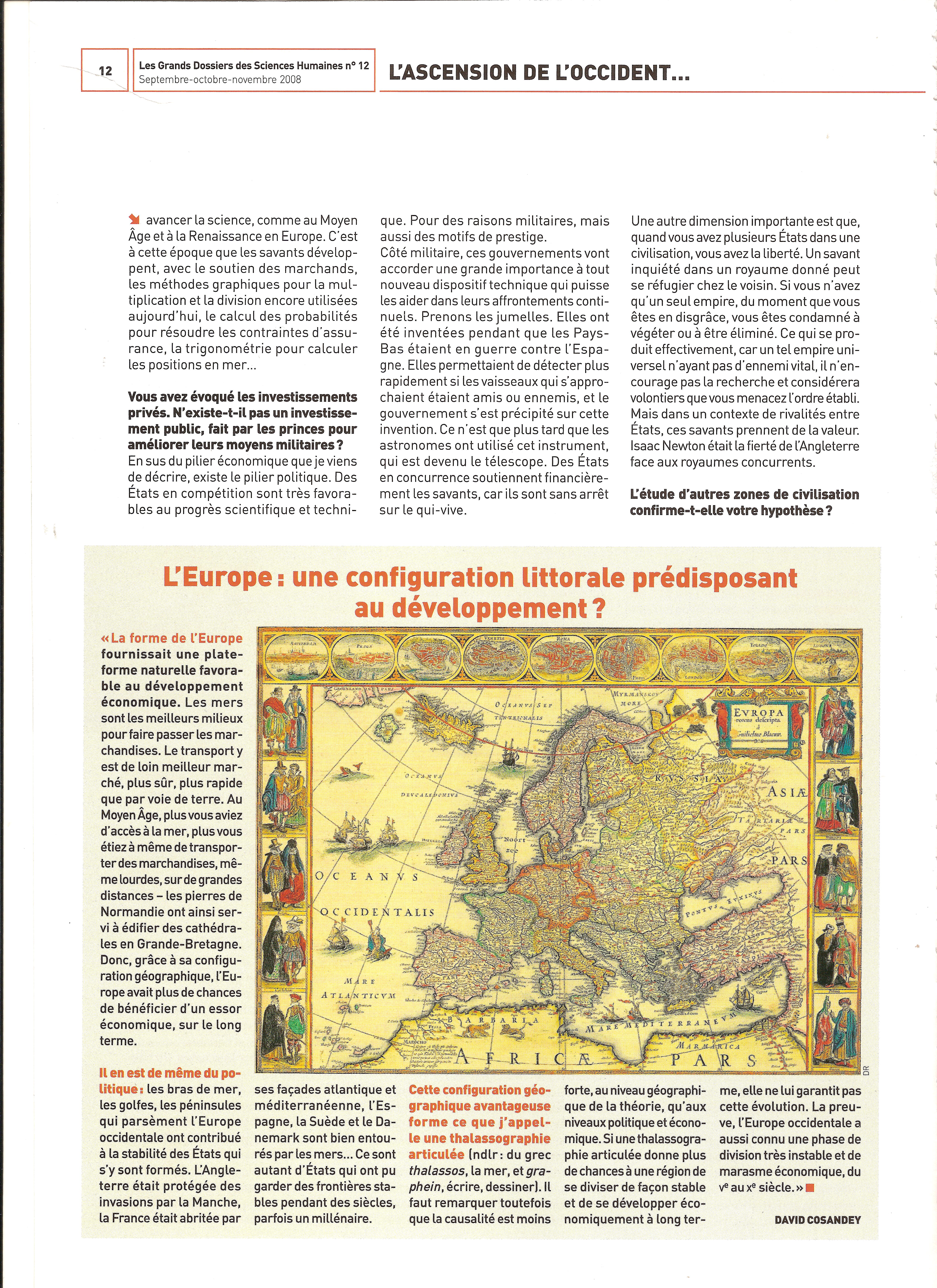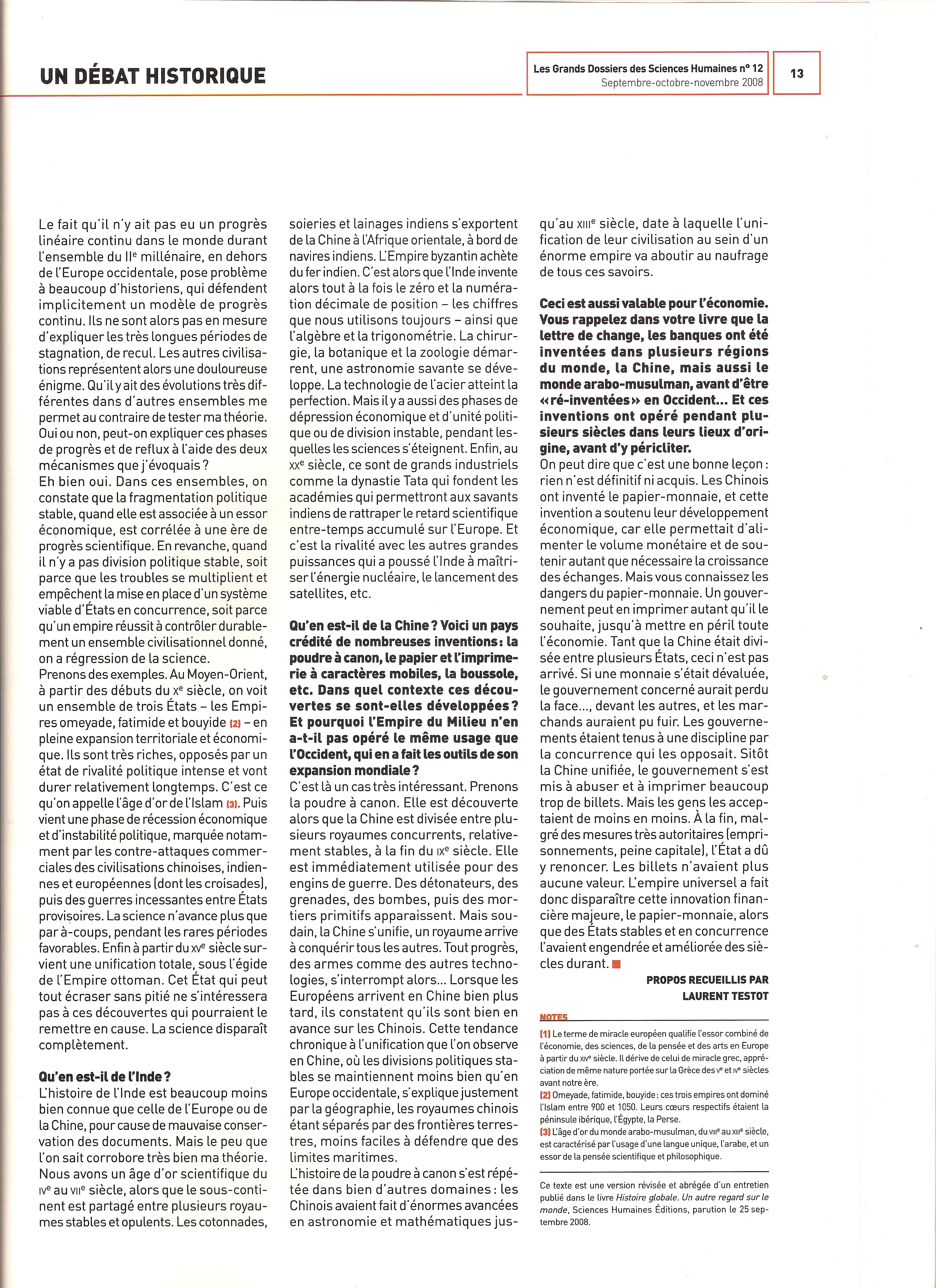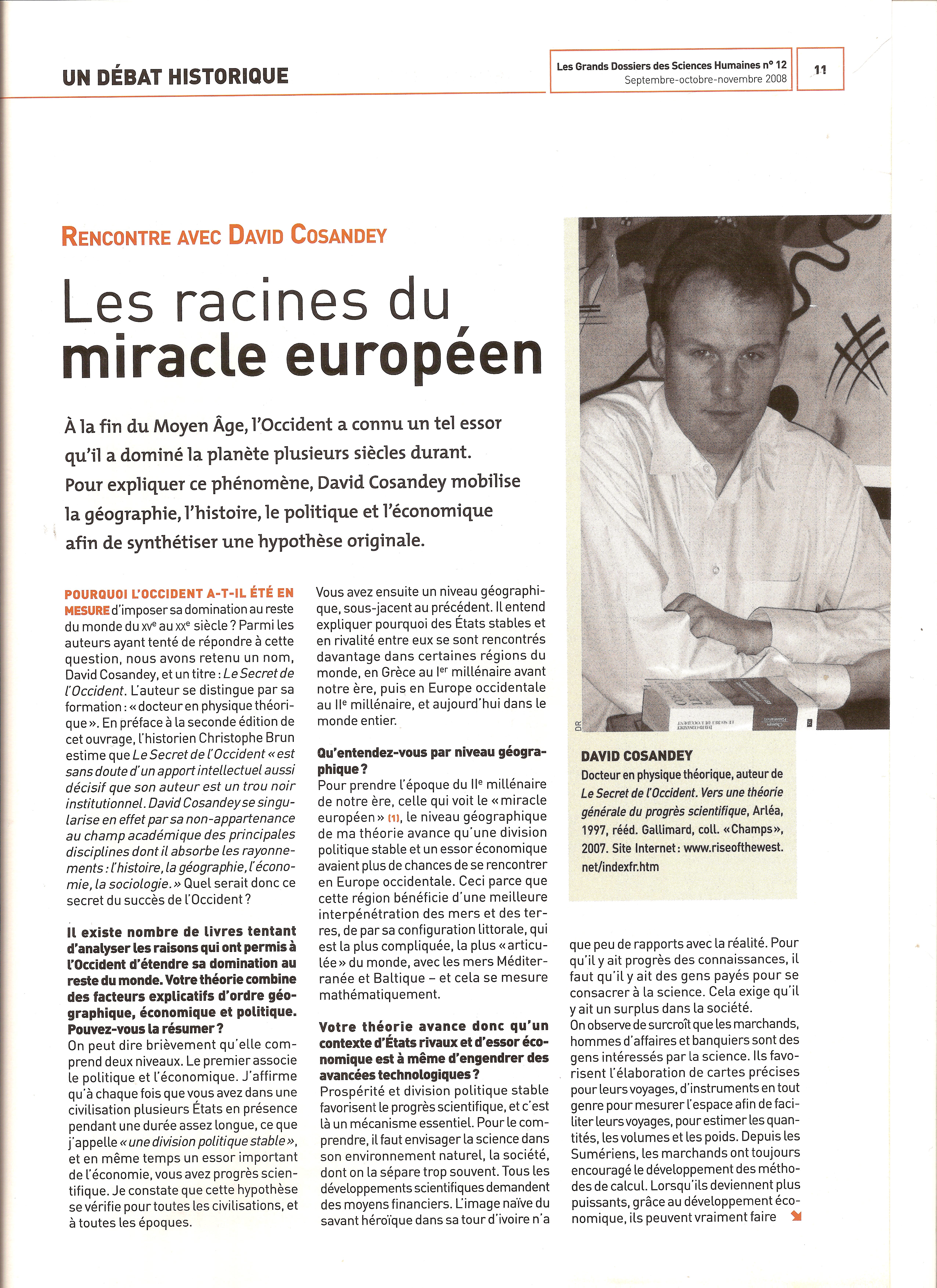 (Laurent Testot: "Les racines du miracle européen", Les Grands Dossiers de Sciences Humaines, no12, Article général (p.4-10). Version PDF (0.8Mb). Source. Interview (p.11-14) (cette page). Pages JPG. Source. Copie de sûreté des versions internet: |