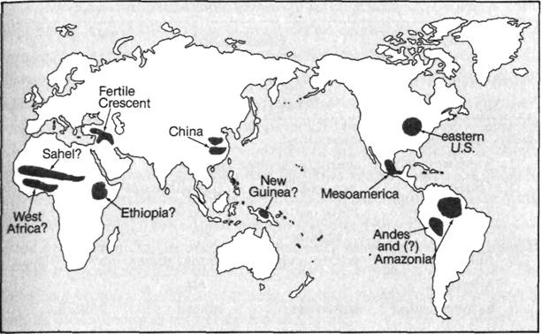 *Throughout this book, dates for about the last 15,000 years will be quoted as so-called calibrated radiocarbon dates, rather than as conventional, uncalibrated radiocarbon dates. The difference between the two types of dates will be explained in Chapter 5. Calibrated dates are the ones believed to correspond more closely to actual calendar dates. Readers accustomed to uncalibrated dates will need to bear this distinction in mind whenever they find me quoting apparently erroneous dates that are older than the ones with which they are familiar. For example, the date of the Clovis archaeological horizon in North America is usually quoted as around 9000 B.C. (11,000 years ago), but I quote it instead as around 11,000 B.C. (13,000 years ago), because the date usually quoted is uncalibrated.